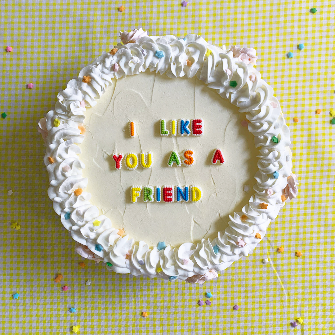 Sometimes you have to tell your loved ones hard or uncomfortable things. No better way to say it than with a fake cake made of lightweight spackle and styrofoam! Faux cakes for life’s little faux pas.